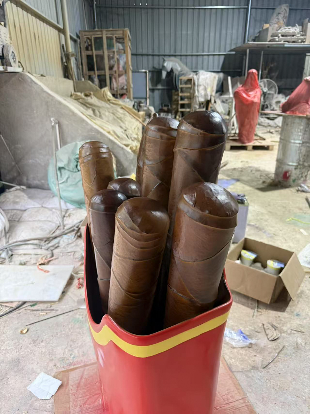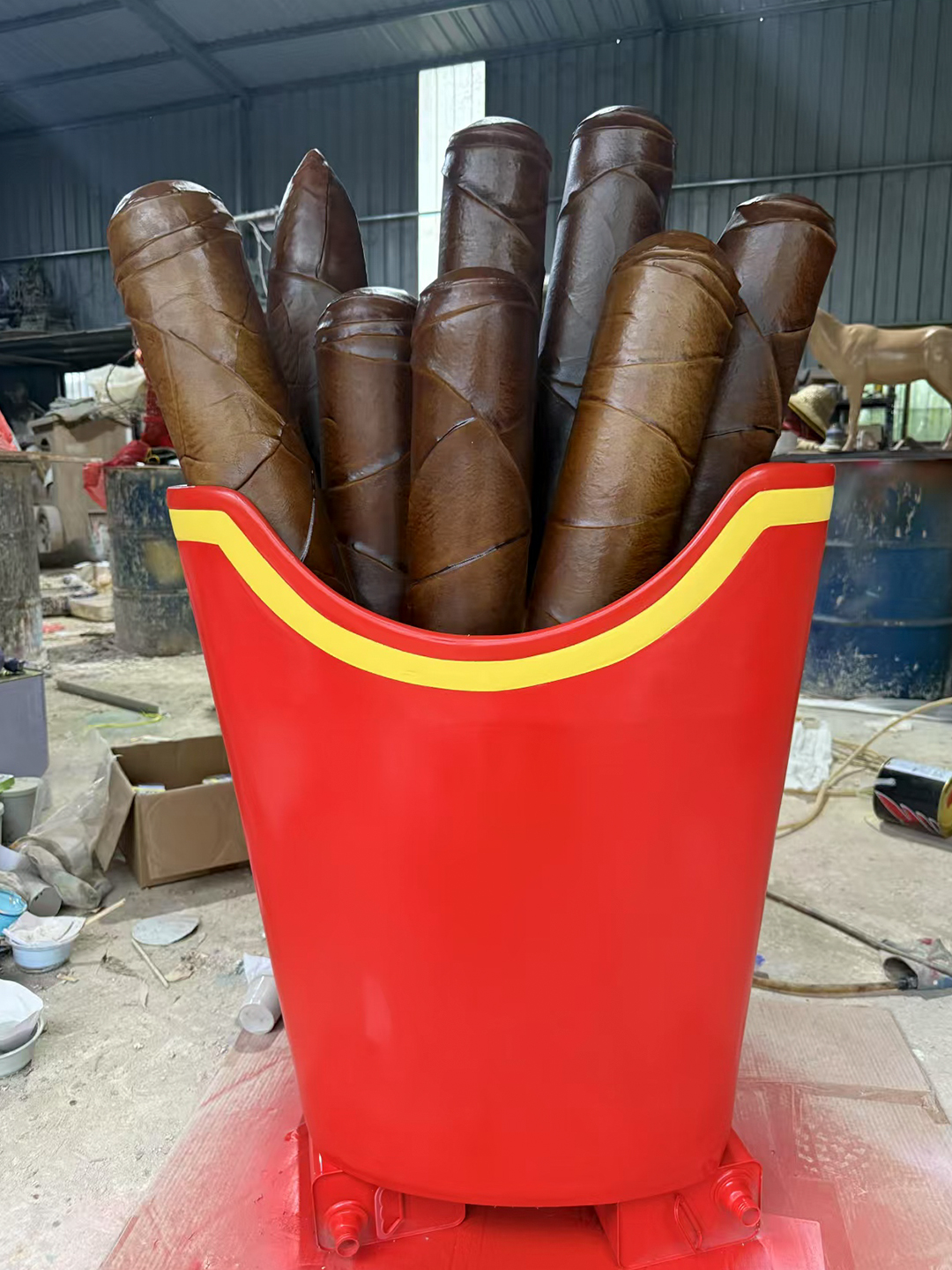 定制玻璃钢雪茄薯条桶雕塑——为雪茄吧打造吸睛引流的流量引擎